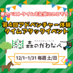 第2回タイムアタックイベント開催中‼ 2024年12月1日 最終更新日時 : 2025年1月1日 仮山大河 12月1日~1月31日の期間で「第2回タイムアタックイベント」を開催中♪皆様のチャレンジまってます! Bluesky