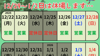 12月29日~1月2日の期間中は誠に勝手ながら休場とさせていただきます。