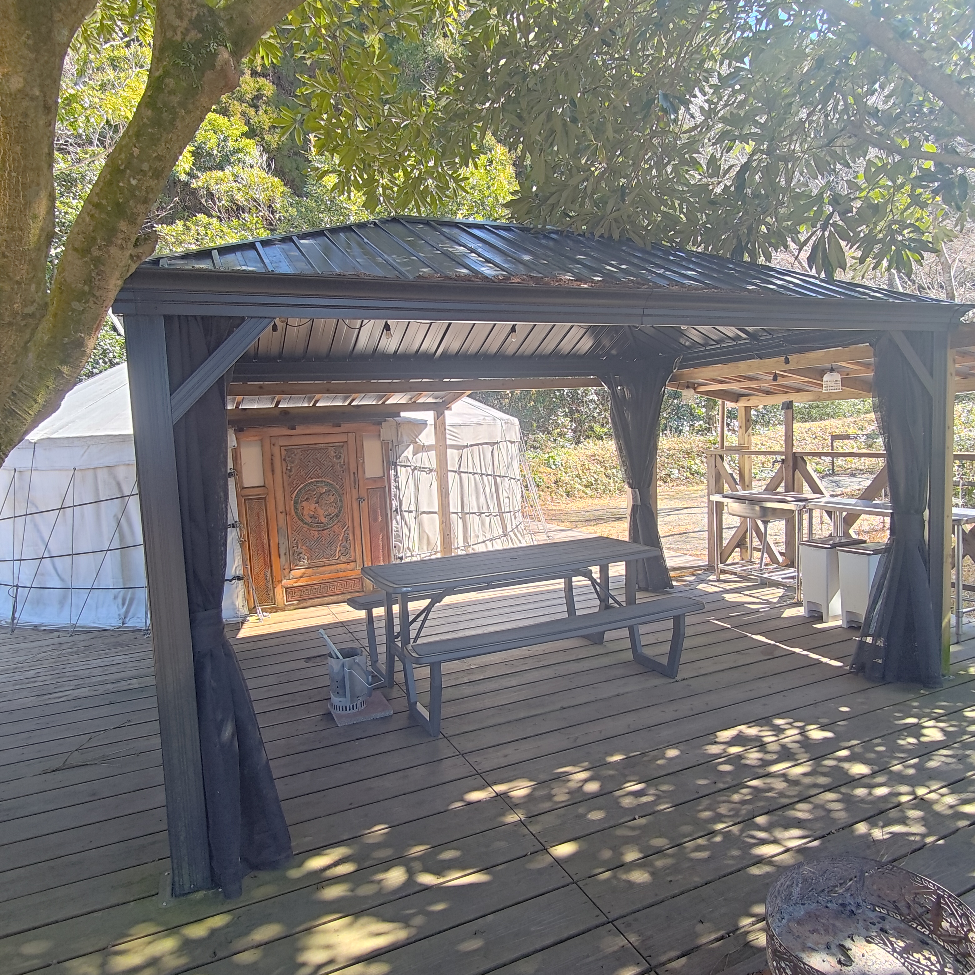 サイト内にはデッキが設置されており、外でBBQ等も楽しめます♪