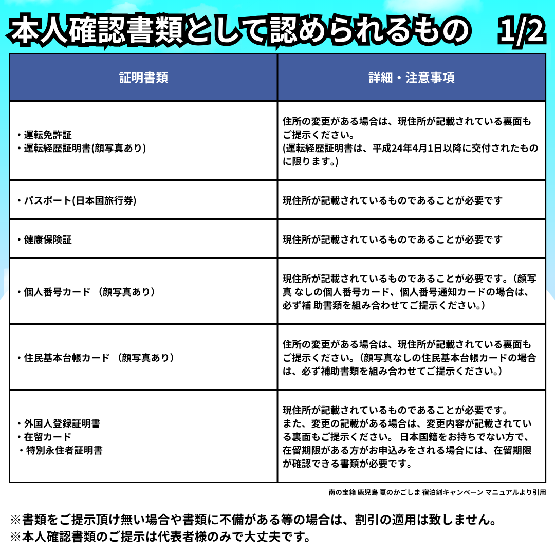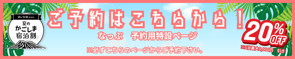 - その他、キャンペーン内容のご不明点は、「南の宝箱 鹿児島 宿泊割キャンペーン事務局」へお問合せ下さい。